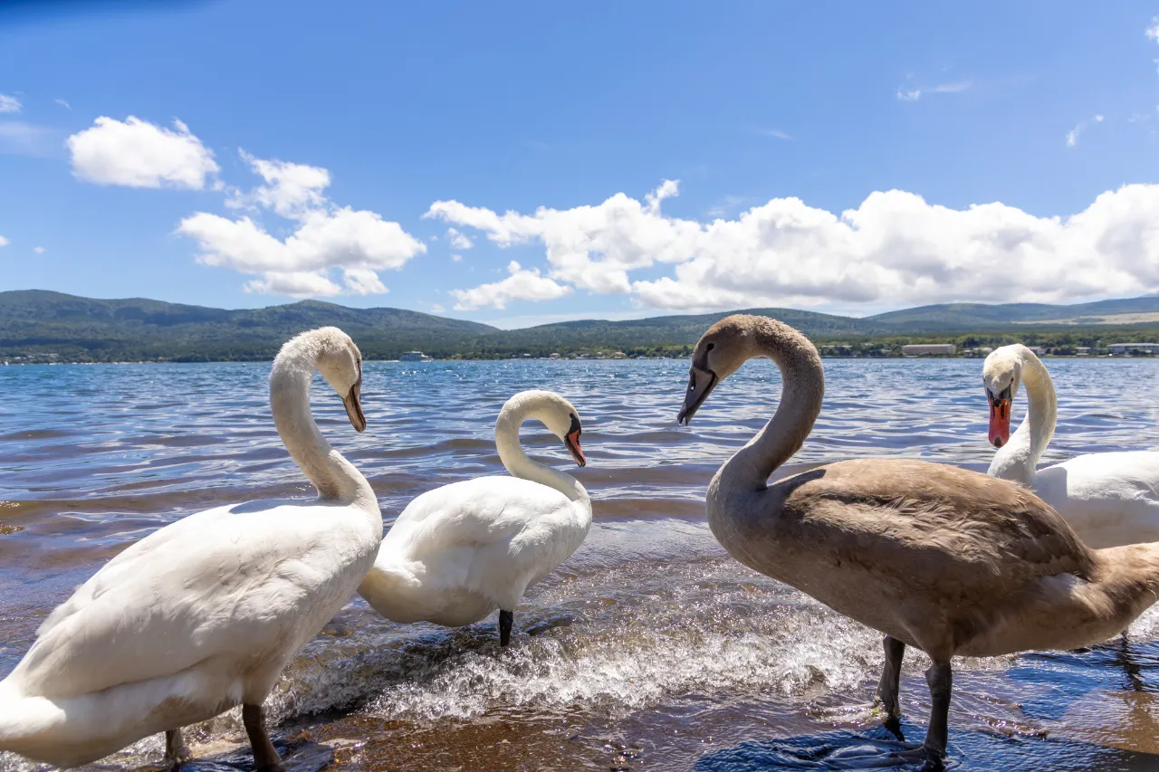 白鳥たちの姿は、湖畔での穏やかな時間を演出しています。自然の美と平和なひとときを感じるために、ぜひ白鳥たちの優雅な姿を眺めながら、心豊かなひとときをお楽しみください。